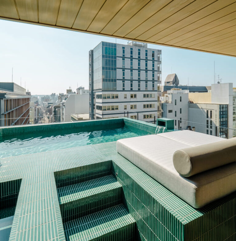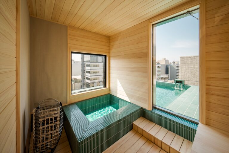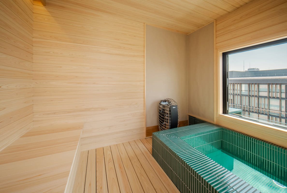 MOKU Kyotoは、屋上に佇むプライベートサウナとプールを備えた、